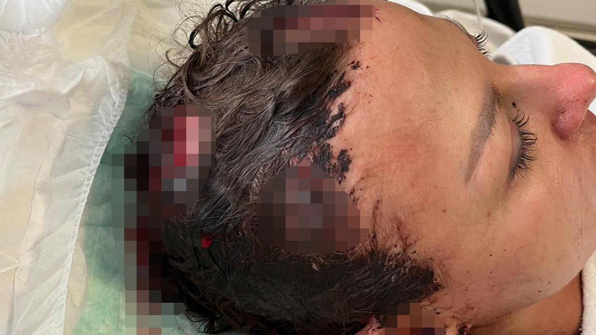 Yere düşen ve elleriyle başını korumaya çalışan kadının, sol elinde çok sayıda kırık, başında yarılma oluştu. Iryna Melnychuk Diğer, telefonuyla KADES uygulamasını kullandı.
